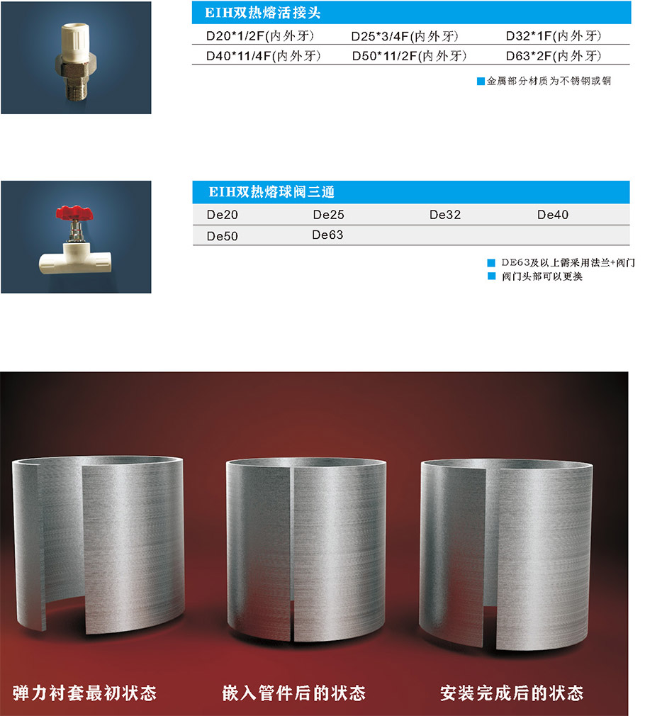 帶彈力襯套型電磁感應加熱型(EIH)雙熱熔管件說明